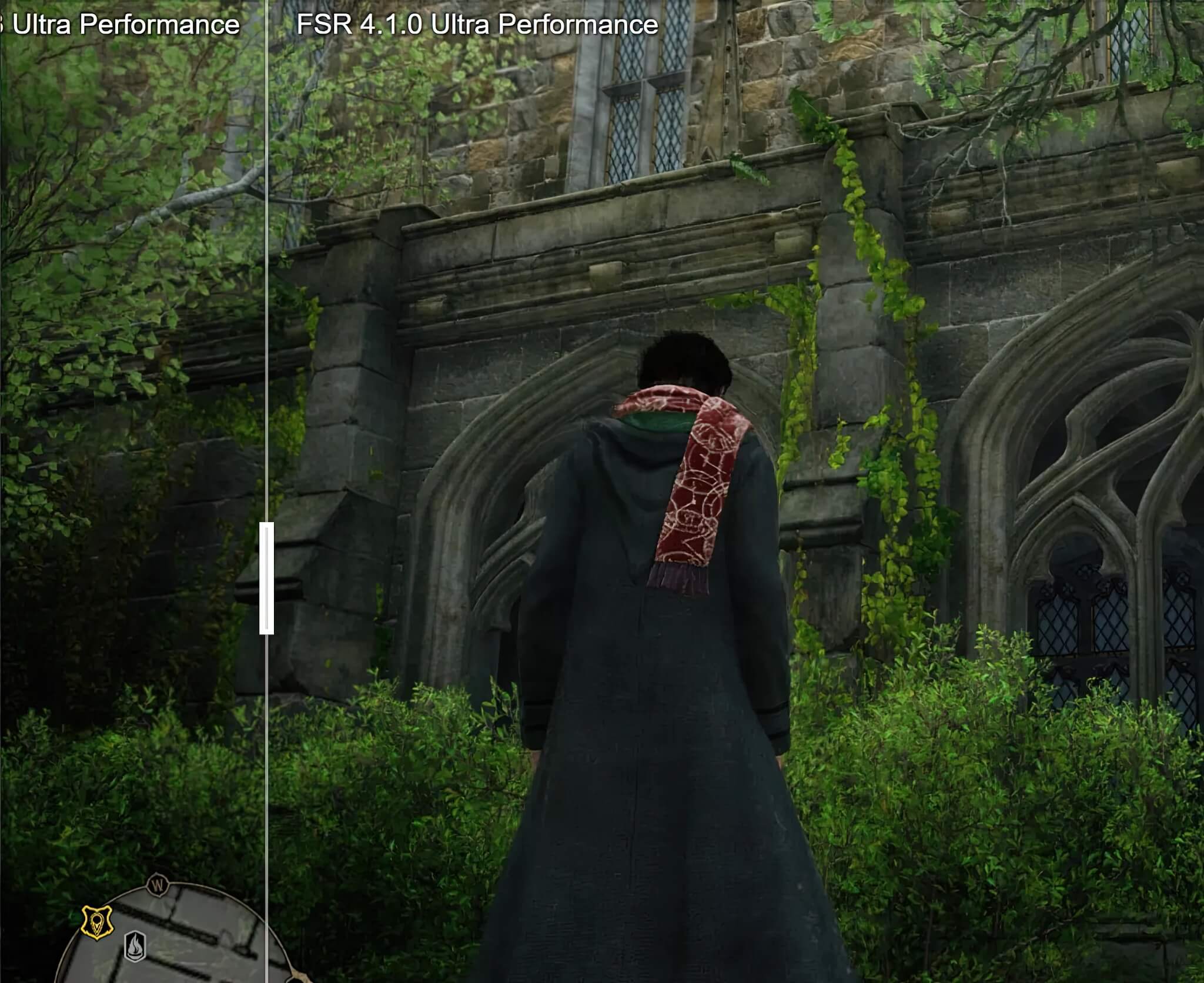 Chưa dừng lại ở đó, thực tế cho thấy FSR 4.1 thể hiện sức mạnh vượt trội ngay cả trong những tình huống khắc nghiệt nhất như chế độ Ultra Performance ở độ phân giải 1080p. Trong các tựa game đình đám như Cyberpunk 2077 hay Hogwarts Legacy, các chi tiết vân bề mặt (texture) ở cả vật thể gần lẫn xa đều được cải thiện rõ rệt, thậm chí độ sắc nét còn tiệm cận với chế độ Quality của phiên bản 4.0.3 cũ. Trong thế giới phù thủy của Hogwarts Legacy, cỏ cây và bụi rậm không còn là những khối màu nhòe nhoẹt mà hiện lên rõ mòn một, giúp Quý khách hoàn toàn đắm chìm vào không gian kỳ ảo của trò chơi. Việc tối ưu hóa hình ảnh ở mức độ sâu này cho thấy AMD đang thực sự tập trung vào giá trị thực tế của sản phẩm thay vì chỉ chạy theo những con số khung hình hào nhoáng trên bảng thông số.
