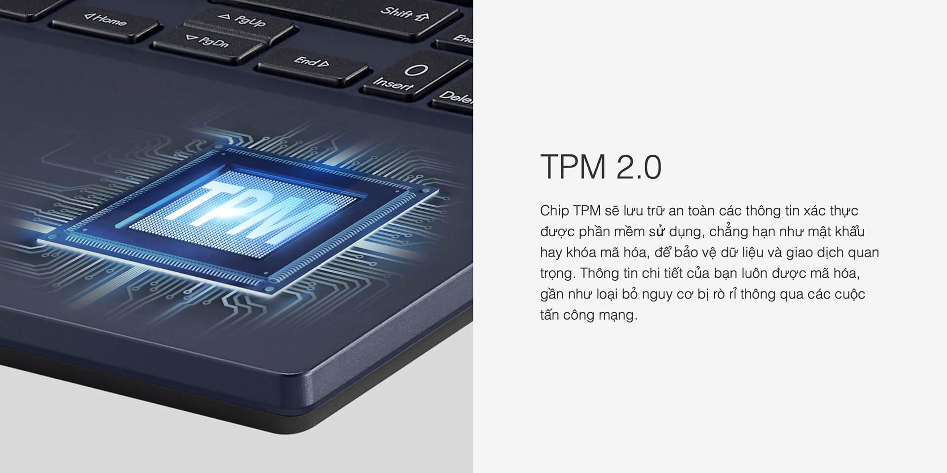 Để củng cố hơn nữa khả năng bảo vệ dữ liệu, ExpertBook B1 – B1500CE (2021) sử dụng chip TPM 2.0 (Trusted Platform Module 2.0) chuyên dụng để mã hóa thông tin quan trọng một cách chắc chắn, đảm bảo dữ liệu mật không bị rò rỉ. Với các tính năng này, laptop doanh nghiệp này mang lại sự an tâm tuyệt đối cho các tổ chức, giúp duy trì dữ liệu và hình ảnh pháp lý rõ ràng, chuyên nghiệp. Asus ExpertBook B1 | B1500CE | 2021 là lựa chọn lý tưởng cho các ngành nghề ưu tiên tính bảo mật cao.