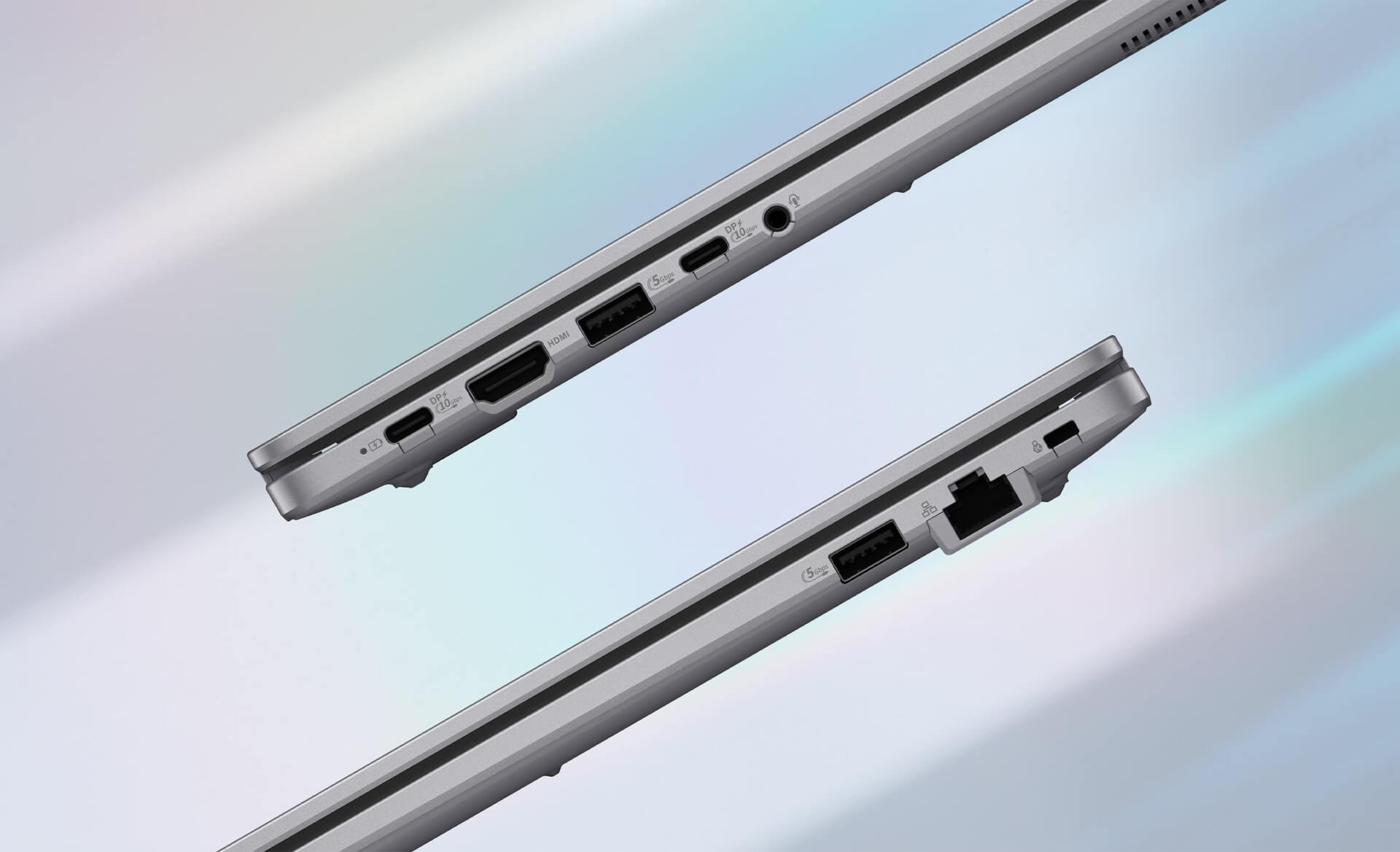 Asus ExpertBook P1 14 inch (2024) sở hữu hệ thống cổng vật lý cực kỳ đầy đủ, đáp ứng trọn vẹn nhu cầu mở rộng ngoại vi và trình chiếu trong môi trường công sở hiện đại. Thiết bị được tích hợp sẵn các cổng kết nối tiêu chuẩn như HDMI, USB Type-C, USB 3.2, USB 2.0, cùng khe thẻ nhớ và jack âm thanh combo, giúp người dùng chuyên nghiệp dễ dàng truy cập và truyền tải dữ liệu trong mọi tình huống. Khả năng tương thích linh hoạt này biến chiếc laptop doanh nghiệp trở thành trung tâm xử lý dữ liệu đắc lực, phục vụ hiệu quả cho các buổi họp trực tuyến, thuyết trình hay các tác vụ văn phòng chuyên sâu mà không cần đến các bộ chuyển đổi phức tạp.