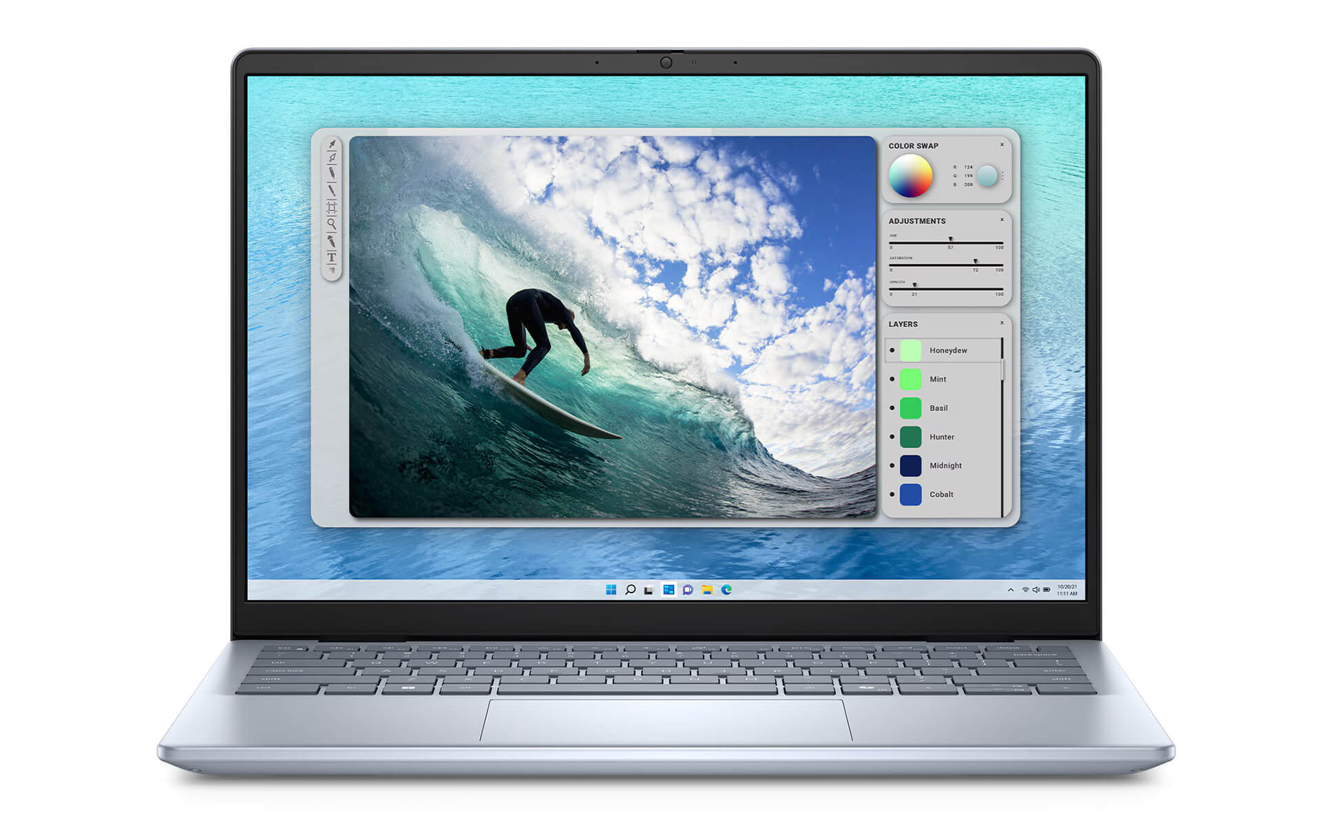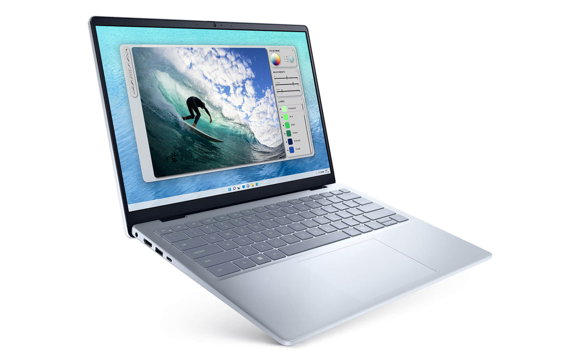 Dell Inspiron 14 5440 ghi điểm tuyệt đối nhờ ngôn ngữ thiết kế tinh tế và thanh lịch, nổi bật với lớp vỏ kim loại cao cấp mang lại sự chắc chắn và độ hoàn thiện tinh xảo. Các đường nét được tối giản và bo tròn mềm mại, không chỉ tạo cảm giác cầm nắm dễ chịu mà còn tôn lên vẻ sang trọng, chuyên nghiệp cho chủ sở hữu. Đặc biệt, phiên bản màu Ice Blue mang đến diện mạo trẻ trung, hiện đại, giúp người dùng từ doanh nhân đến sinh viên dễ dàng thể hiện phong cách cá nhân thời thượng trong mọi tình huống gặp gỡ khách hàng.