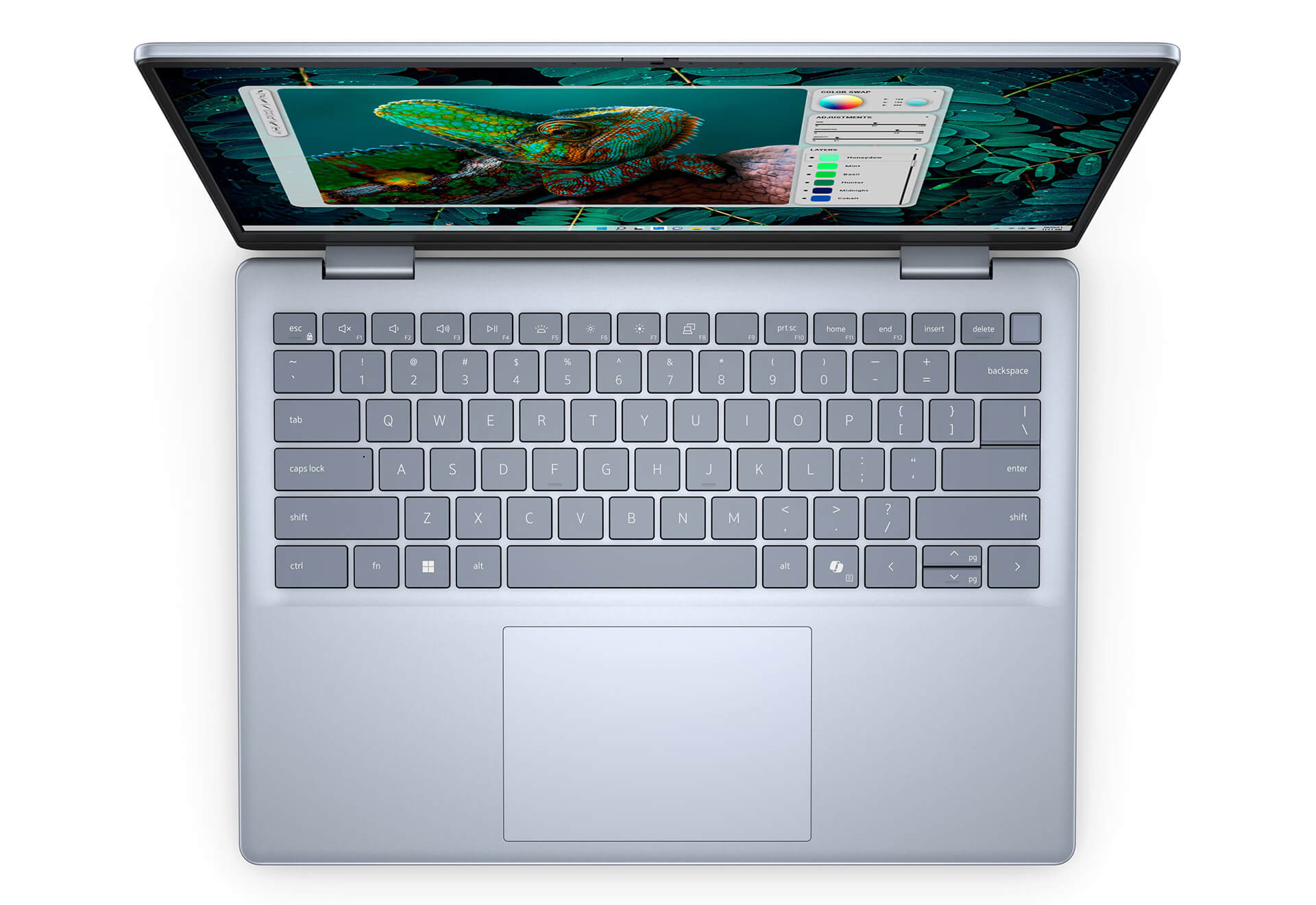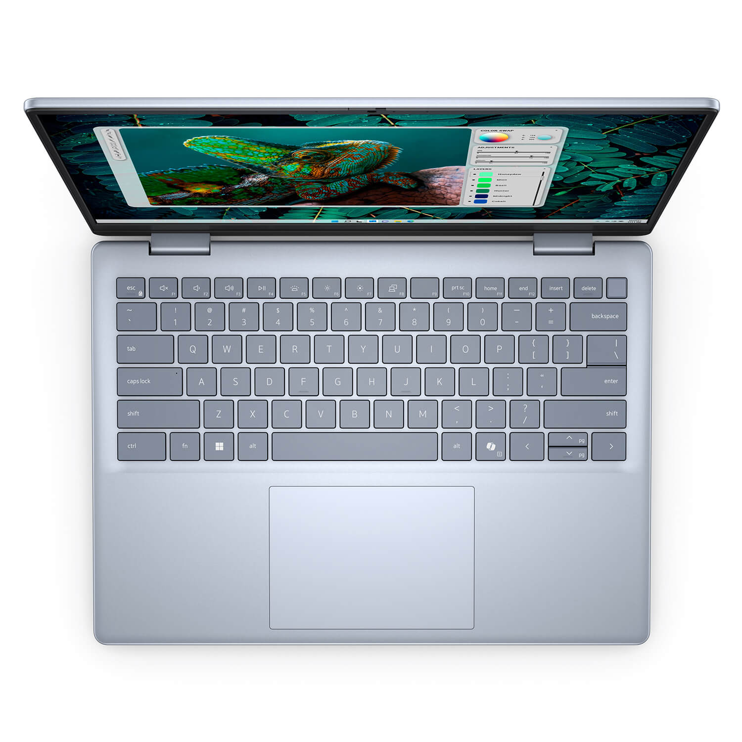 Dell Inspiron 14 Plus 7440F (2025) sở hữu ngôn ngữ thiết kế tối giản nhưng toát lên vẻ sang trọng nhờ sự kết hợp tinh tế giữa chất liệu và màu sắc. Phần nắp máy và khung bàn phím được chế tác từ kim loại cao cấp, không chỉ mang lại độ bền bỉ và cảm giác chắc chắn khi cầm nắm mà còn gia tăng tính thẩm mỹ cho thiết bị. Đặc biệt, phiên bản màu Ice Blue thời thượng giúp chiếc laptop này trở nên nổi bật và phong cách, phù hợp với gu thẩm mỹ đa dạng của người dùng trong nhiều không gian làm việc hay giải trí khác nhau.