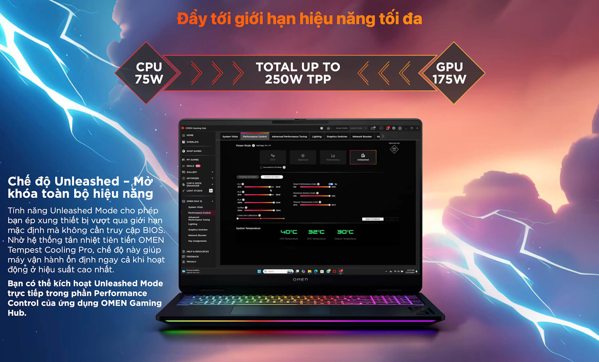 Đặc biệt, chế độ Unleashed Mode cho phép mở rộng hiệu năng vượt giới hạn mặc định, đồng thời công nghệ AI còn tối ưu theo từng thông số hiển thị như độ phân giải và chất lượng hình ảnh. Các thử nghiệm thực tế cho thấy, khi kích hoạt các tính năng này, HP Omen Max 16 không chỉ duy trì sự mượt mà trong các trận game đối kháng mà còn tiết kiệm năng lượng và hạn chế hiện tượng giật lag. Chính nhờ sự kết hợp chặt chẽ giữa phần cứng mạnh mẽ và phần mềm tối ưu thông minh, sản phẩm trở thành lựa chọn lý tưởng cho những ai tìm kiếm sự tùy biến, ổn định và hiệu quả trong trải nghiệm gaming hiện đại.