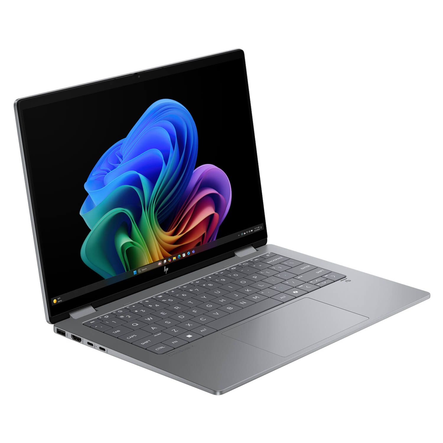 HP OmniBook X Flip Next Gen AI 14 được trang bị màn hình cảm ứng 14 inch với độ phân giải 2K IPS (1920 x 1200), mang lại hình ảnh sắc nét, màu sắc sống động và góc nhìn rộng. Thiết kế viền mỏng kết hợp cùng kính cường lực Gorilla Glass 3 giúp tăng độ bền, chống trầy xước hiệu quả đồng thời tạo cảm giác sang trọng và tinh tế cho thiết bị. Đây là một trong những yếu tố quan trọng nâng cao trải nghiệm thị giác cho cả công việc lẫn giải trí.