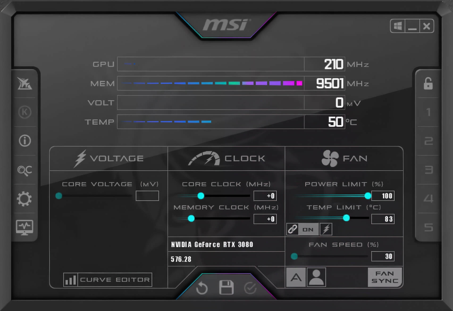 Bên cạnh ép xung, Afterburner còn hỗ trợ undervolt thông qua Curve Editor, giúp giảm nhiệt độ, giảm tiếng ồn và tối ưu điện năng. Người dùng có thể bật tùy chọn “Apply overclocking at system startup” để tự động áp dụng cấu hình mỗi khi khởi động Windows. Tuy nhiên, một số trường hợp vẫn cần mở phần mềm để đảm bảo thiết lập hoạt động ổn định.