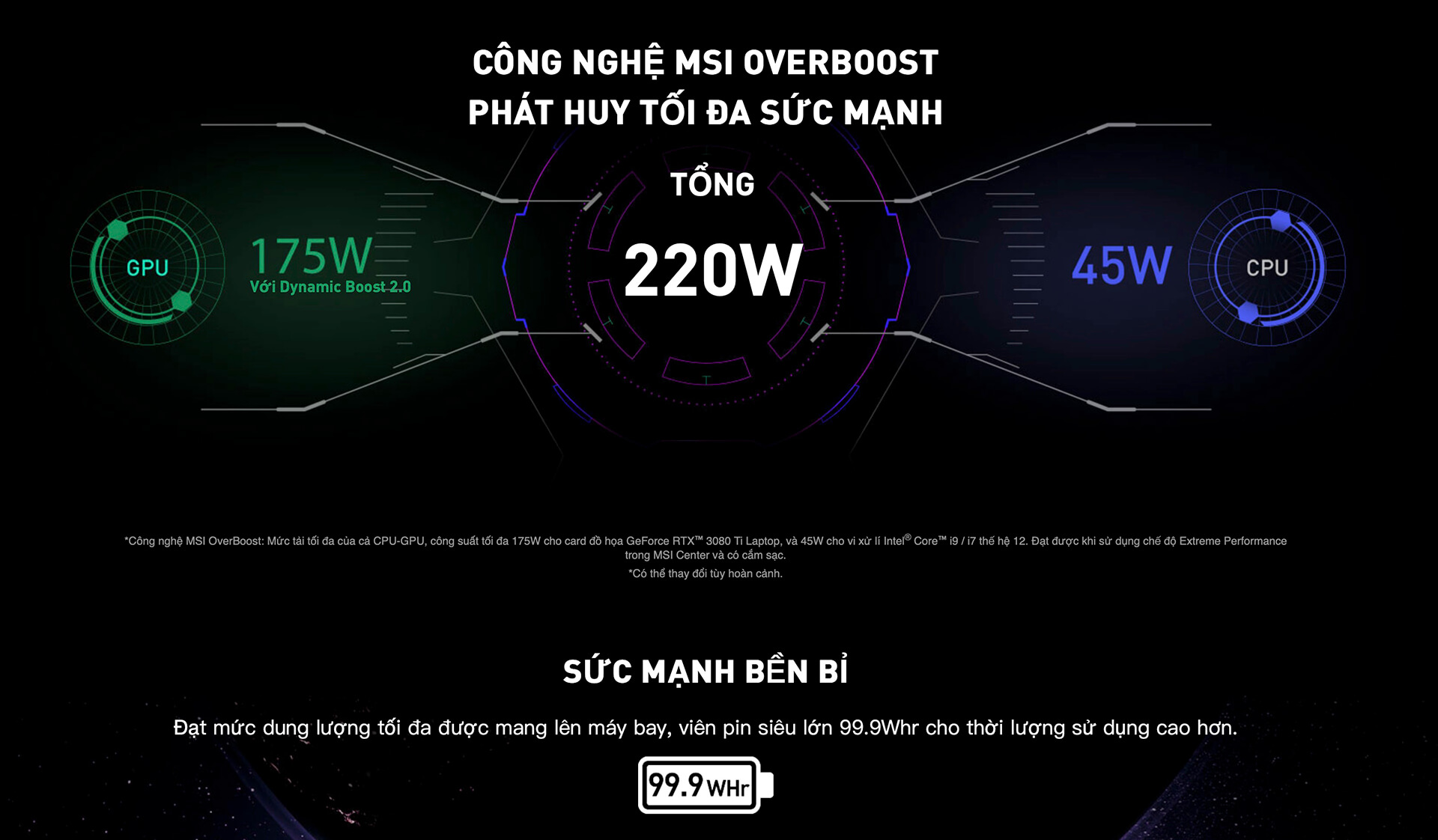 MSI Raider GE76 12UE được trang bị cấu hình mạnh mẽ, đáp ứng mọi nhu cầu chơi game và làm việc nặng. Máy sử dụng bộ vi xử lý Intel Core i9 thế hệ 12 mới nhất, cùng với card đồ họa NVIDIA GeForce RTX 3080 Ti, RAM DDR5 tốc độ cao và ổ cứng SSD NVMe PCIe siêu tốc.