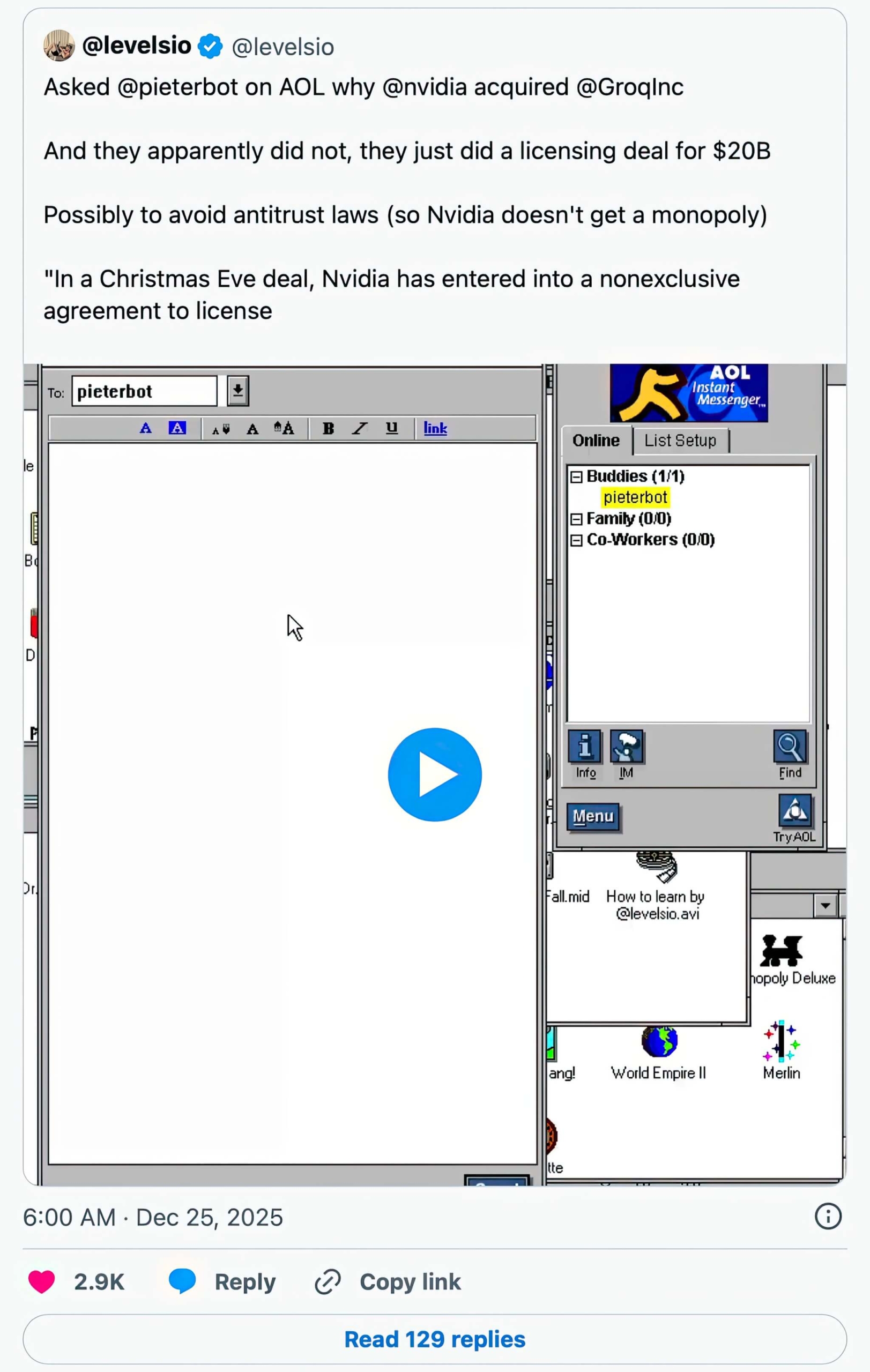 Thương vụ này hoàn toàn phù hợp với mô hình “hackquisition” (thâu tóm lách luật) đang thịnh hành tại Thung lũng Silicon: một giao dịch không phải là mua lại về mặt pháp lý nhưng hoạt động tương tự trong thực tế. Các thỏa thuận kiểu này thường kết hợp thanh toán tiền mặt lớn, cấp phép sở hữu trí tuệ và tuyển dụng chọn lọc các lãnh đạo cấp cao. Microsoft, Google, Amazon và Meta đều từng sử dụng phương pháp này để sở hữu công nghệ mà không bị “tuýt còi”. Trong trường hợp này, mục tiêu thực sự của Nvidia dường như là CEO Jonathan Ross, chủ tịch Sunny Madra và các kỹ sư nòng cốt chuyên về chip suy luận AI siêu hiệu quả.